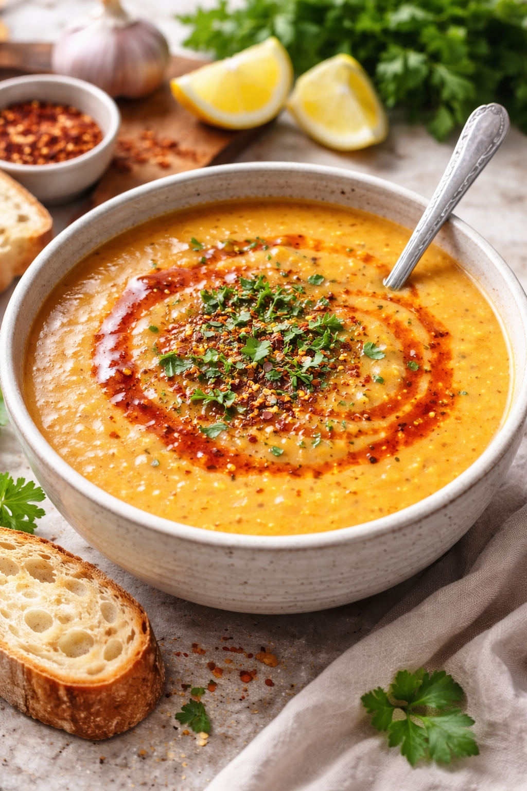 aus passierten Linsen nach anatolischer Art mit einer Zitronenscheibe