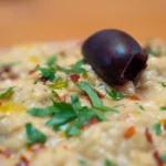 verfeinert mit Knoblauch, Pfeffer, Olivenöl und gegrilltem Auberginenmus