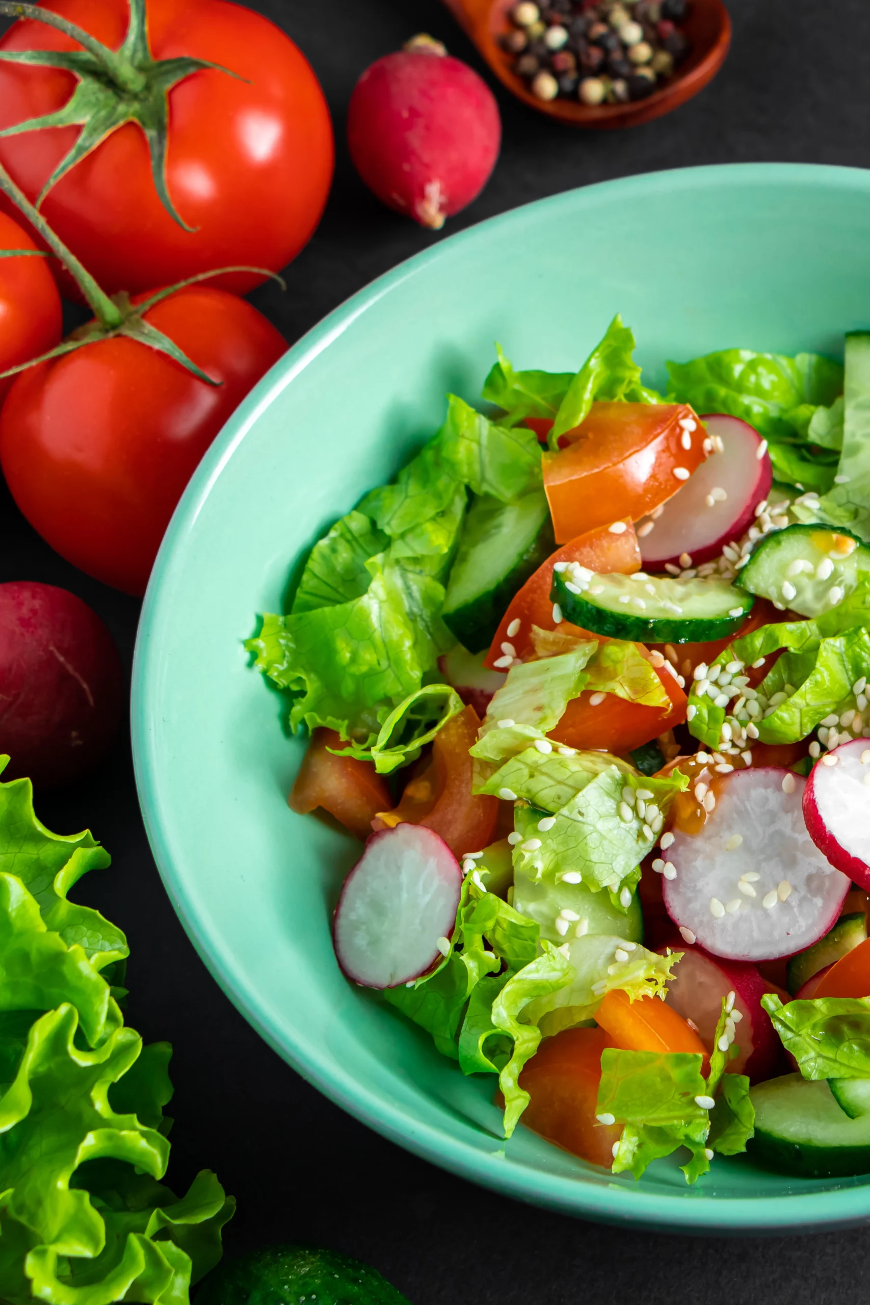 Thunfischsalat mit knackigem Salat, Tomaten und Zwiebeln