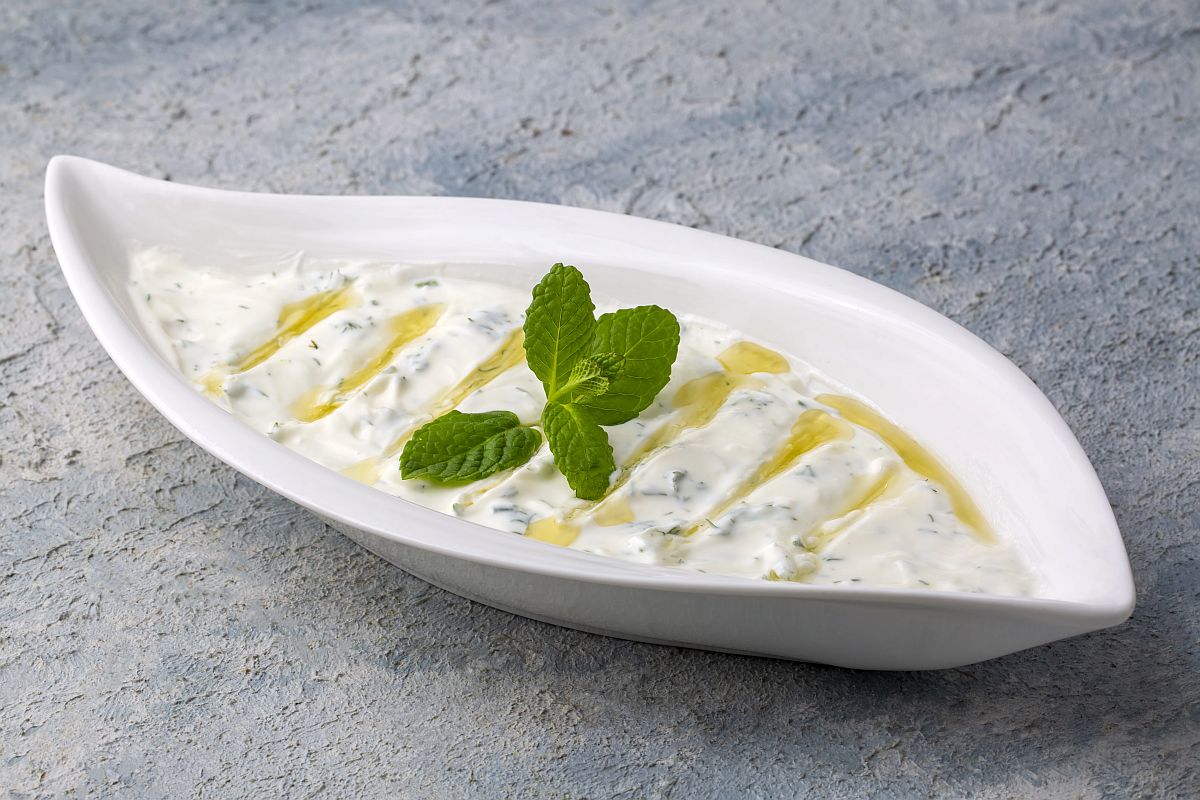Sahnejoghurt nach original türkischer Art, verfeinert mit Knoblauch, Gurken und Pfefferminz