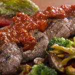 Frisch gegrillter, würziger Kalbspieß